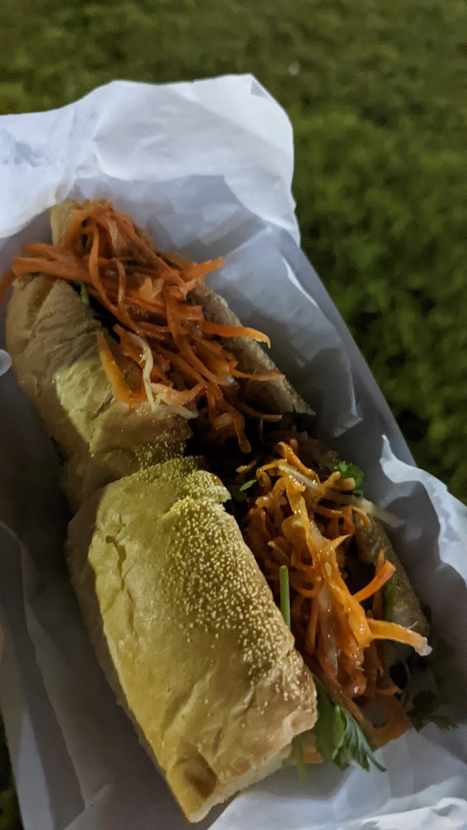 The atmosphere pulses with an easygoing energy, where the steady rhythms of a DJ blend into the chatter of families, friends, and food lovers exploring the colorful line-up of trucks. It’s part festival, part neighborhood hangout, where laughter carries across picnic blankets and children bounce with unbridled joy nearby. The pace is relaxed but spirited — a place where you can take your time deciding whether to indulge in tender oxtails, a fresh ceviche, or a perfectly toasted bánh mì, all while soaking in the lively scene around you.